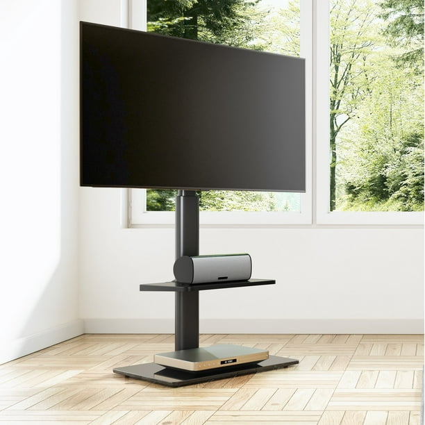 Fitueyes Black Swivel Floor Stand Mount For Greater Than 50 Screens With Shelving Holds Up To 66 Lb Wayfair